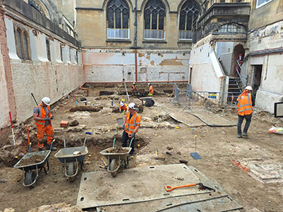 Photo: Excavations during renovation works to Oriel's bar and kitchens - OA.