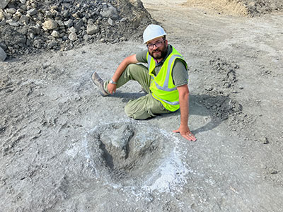 In a stunning find, researchers from the Universities of Oxford and Birmingham have uncovered a huge expanse of quarry floor at Dewars Farm Quarry near Bicester filled with hundreds of different dinosaur footprints, creating multiple enormous trackways. Dating back to the Middle Jurassic Period (around 166 million years ago), the trackways form part of a huge ‘dinosaur highway’ and include footprints from the 9 metre ferocious predator Megalosaurus, and herbivorous dinosaurs up to twice that size.