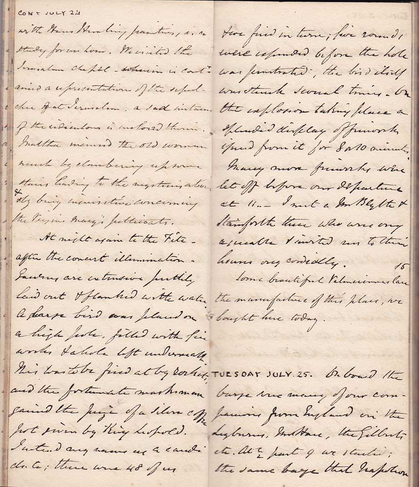 TUESDAY JULY 25. On board the barge were many of our companions from England in the Leyburns, Mrs Hare, the Gilberts etc. At ½ past 9 we started; the same barge that Napoleon
