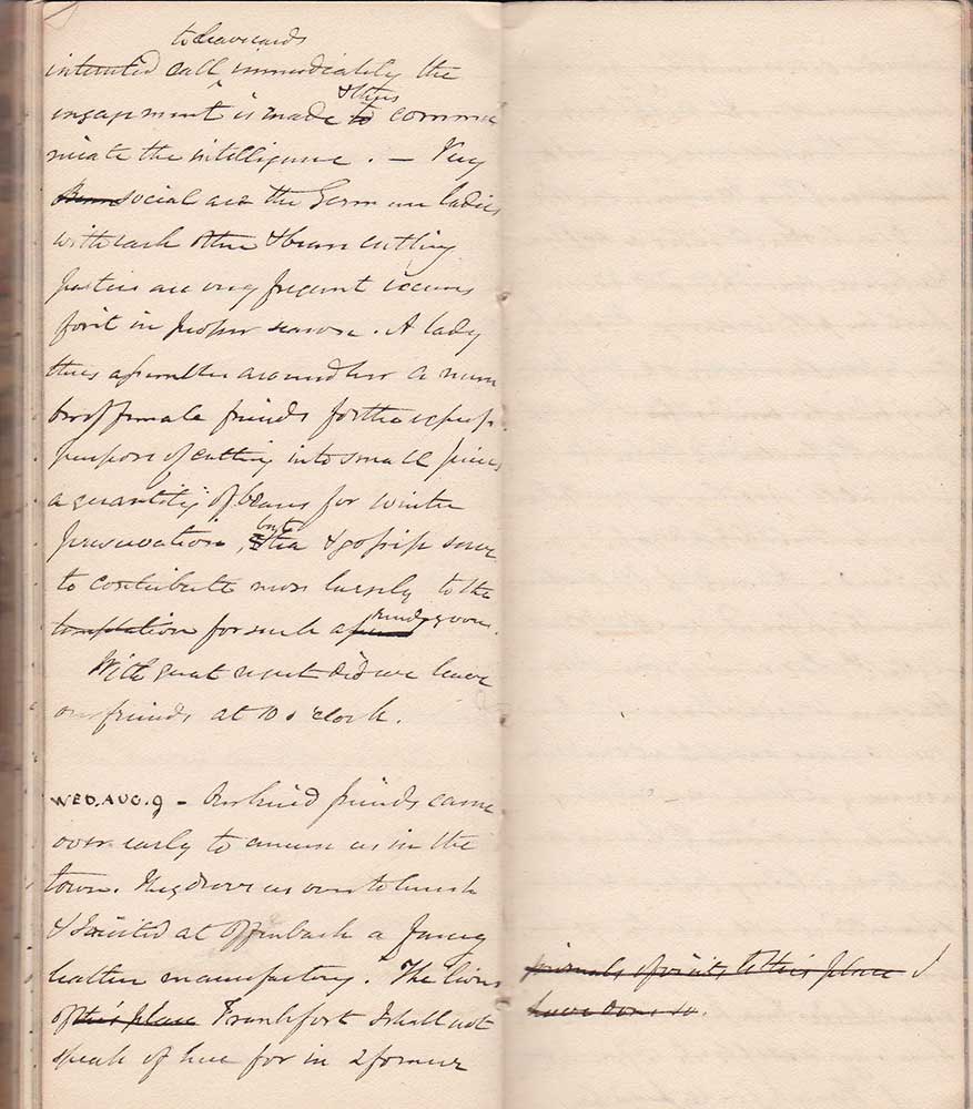 WED. AUG. 9 Our kind friends came over early to amuse us in the town. They drove us over to lunch & I visited at Offenbach a fancy leather manufactory. The lions of Franfort I shall not speak of here for in 2 former