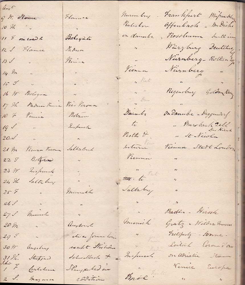 | 9 W | Rome | Florence | Nuremberg | Frankfurt Weisse Schanne |