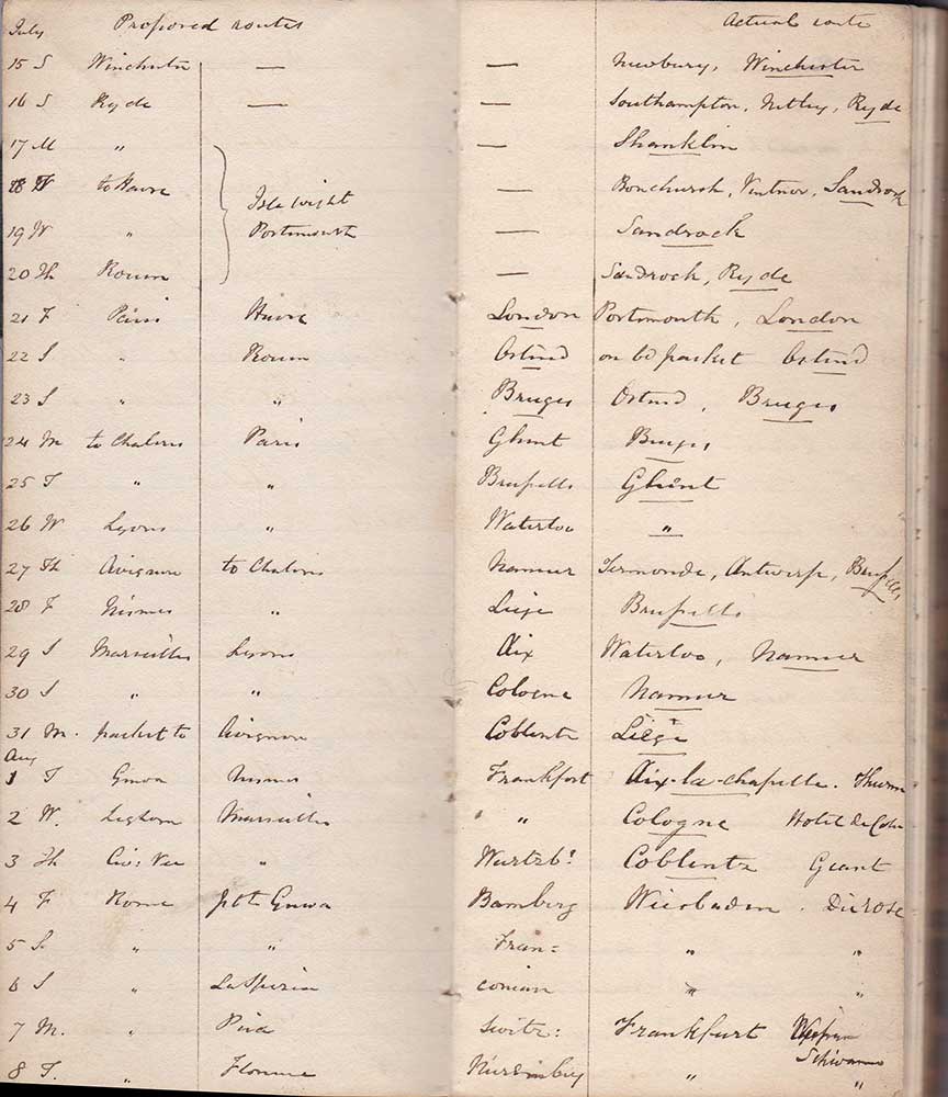 | Aug 1 | Genoa | Nimes | Frankfort | Aix-la-chapelle, Thermes |